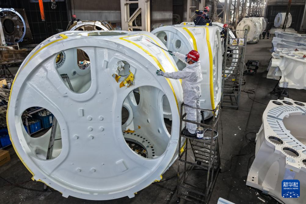 这是11月20日在甘肃省酒泉经济技术开发区日月重工(甘肃)有限公司拍摄的待出厂的风机轮毂(无人机照片)◇▷。