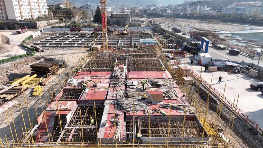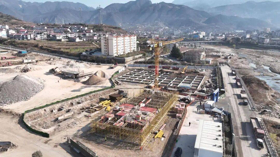 仲冬时节,在保康中坪鲟鱼产业园二期项目建设现场◁,一派繁忙景象▷。塔吊大臂忙着吊装建筑材料△◁,挖掘机来回穿梭平整场地▷…△,数十名工人冒着严寒加紧施工,加工车间主体工程已封顶,新建的鱼塘也初具雏形。