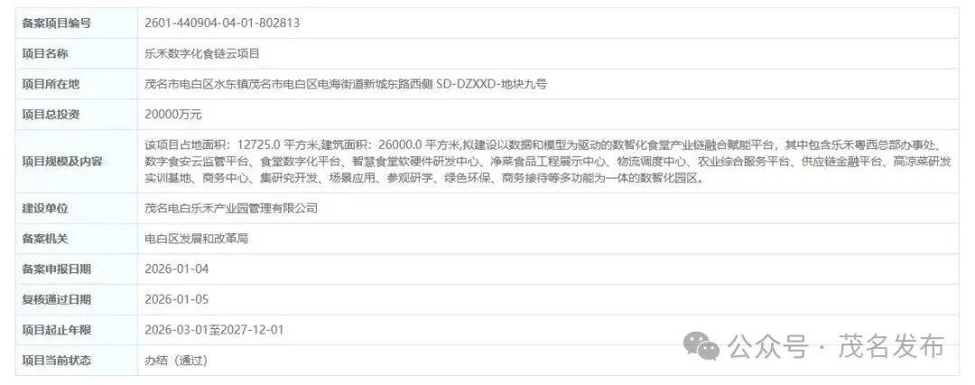 项目规模及内容:该项目占地面积:12725=◆▼.0 平方米,建筑面积◇△:26000.0 平方米,拟建设以数据和模型为驱动的数智化食堂产业链融合赋能平台,其中包含乐禾粤西总部办事处★、数字食安云监管平台、食堂数字化平台、智慧食堂软硬件研发中心、净菜食品工程展示中心、物流调度中心、农业综合服务平台、供应链金融平台、高凉菜研发实训基地、商务中心○=□、集研究开发▲△◆、场景应用▼、参观研学▽◇、绿色环保、商务接待等多功能为一体的数智化园区。