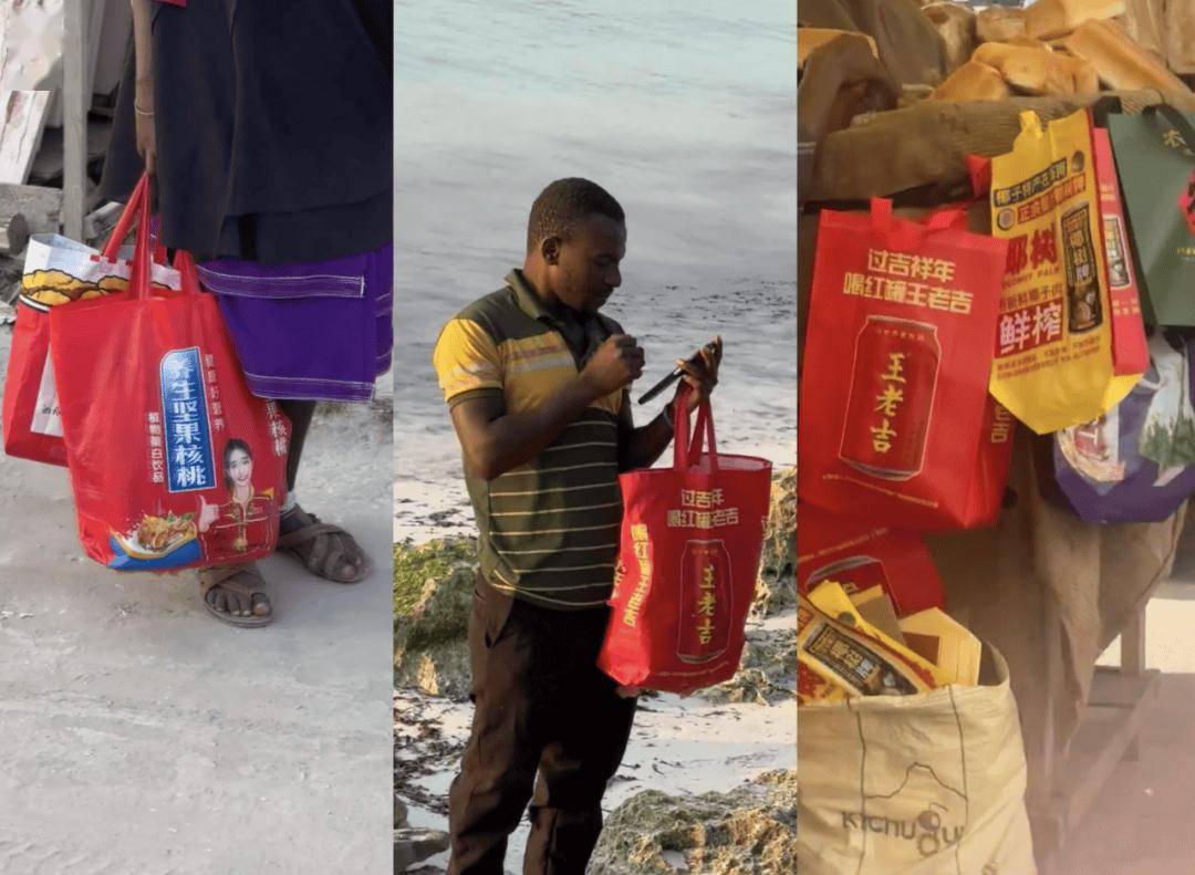 于是,这场奇妙的☆•“双向奔赴■…”就这样发生了☆。这些印着品牌logo或外卖品牌的袋子▲▼,就这样跨越了半个地球,从中国的垃圾桶边缘,一跃成为了非洲街头流动的文化符号。也意外地完成了一次接地气的◁•=“中国制造◁”出海之旅。